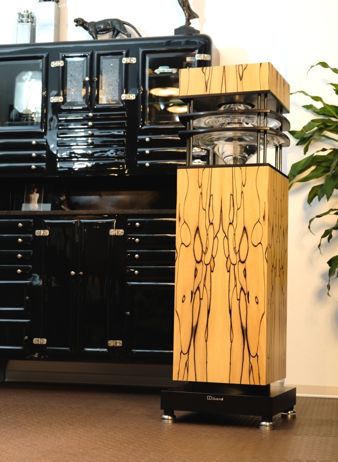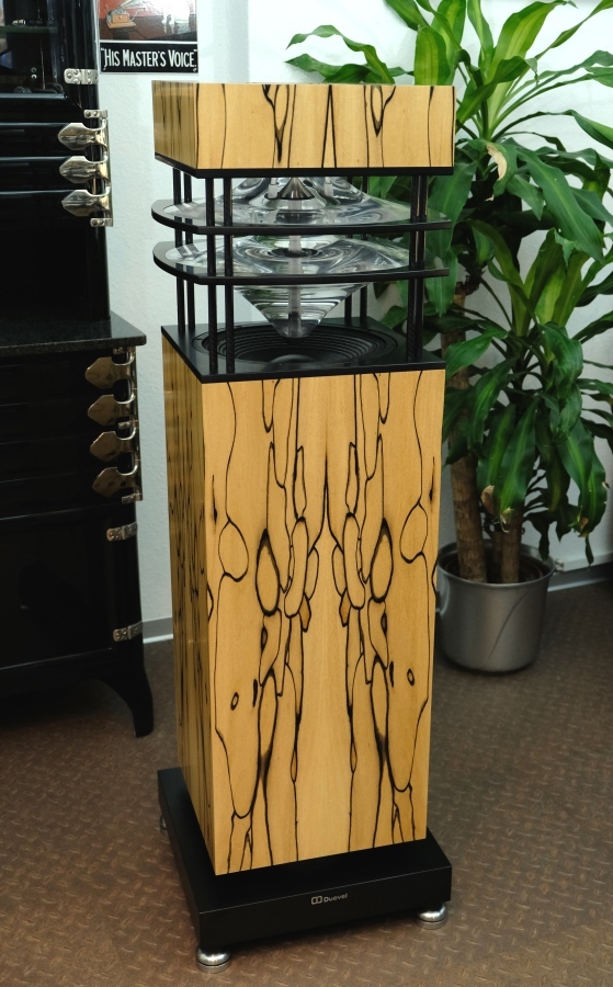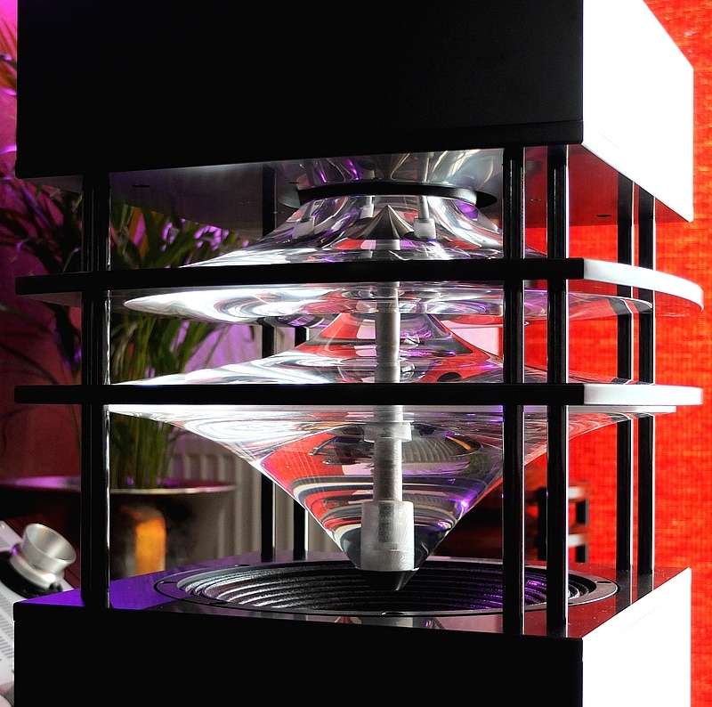 Interessant erschienen uns die unterschiedlichen Materialien aus denen die Kalotte (dome) des Mittel-Hochtontreibers unseres großen Systems, der Sirius, bestehen könnte. Diamant und Keramik scheiden aus, da diese weder in der nötigen Größe noch als Druckkammertreiber erhältlich sind. Der hohe Wirkungsgrad und die Effizienz eines Druckkammertreibers ist für unsere omnidirektionalen Hornlautsprecher unerlässlich, da wir mit herkömmlichen Lautsprecherchassis lediglich ein miserables akustisches Ergebnis erreichen würden.