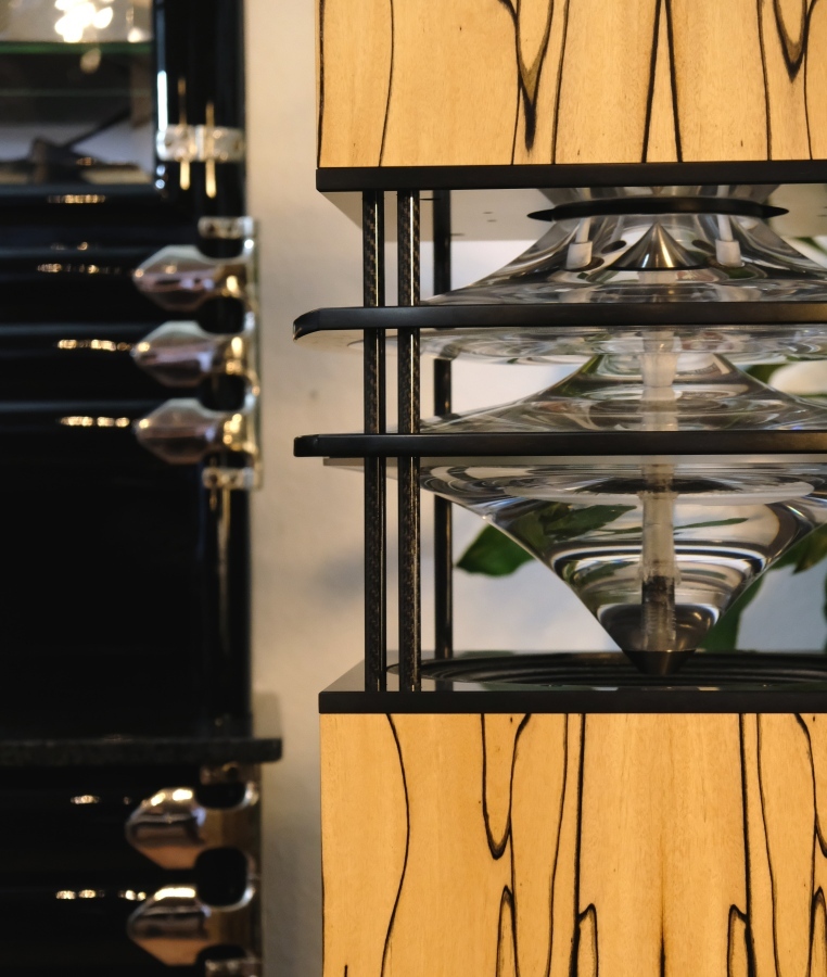 Unser neuestes Projekt, die Sirius BE, vereint die Vorteile eines Beryllium Mittel-Hochton-Druckkammertreibers mit den akustischen und optisch außergewöhnlichen Acrylhörnern. Diese werden aus dem Vollen gefräst, in aufwendiger Handarbeit hochglanzpoliert und überzeugen schon durch ihr immenses Eigengewicht. Acryl besitzt eine doppelt so hohe Dichte wie bspw. Holz und hat dadurch eine Steifigkeit und Trägheit, die keine Eigenschwingungen (Gegenteil –> Glocke/Klangschale) zulassen. Die hohe innere Dämpfung garantiert, dass der Klang (Sound) der Musik möglichst optimal und unverfremdet das Ohr erreicht.