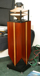 If the Audiopax speaker was my outstanding new product introduced at this year's CES, then the Duevel room gets a special nod for introducing two products that have attained fame elsewhere but are nearly unknown here: The Duevel omni-directional, partially horn-loaded loudspeaker and the Pluto turntable. The Duevel loudspeakers have regularly won "Best of Show" awards at European High-End shows, including the prestigious Frankfurt Show where they are often paired with the Klimo Beltaine 300B amplifiers. Ted Lindblad of HighEndAudio.com imports both into the States and thus was able to give Vegas showgoers an ample dose of what it is that has captured the imagination of our European counterparts. On hand were the Bella Luna Diamante, a full-range, omni-directional loudspeaker driven with a mere 5 watts/channel by the superb Klimo Beltaine monoblock. When you think omni-directional, you think mbl. When you think mbl, you do not think 5 watts. You also don't think full-range loudspeakers for 7.5K; and certainly not as beautifully finished as these. When you think Duevel Bella Luna, this, my friend, is exactly how you are encouraged to think. Very liberating, n'est ce pas? Magnifique.