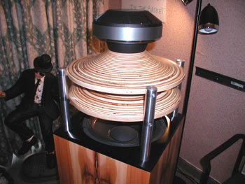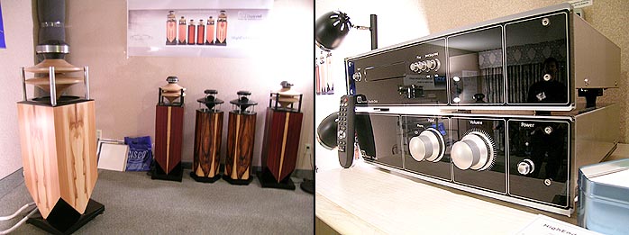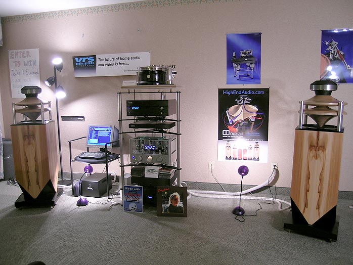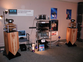 I really enjoyed the music made by the Duevel Jupiter loudspeakers in the HighEnd Audio room although I can already tell you what my wife will say about them based on their looks. Still, they did a lovely job representing my old Ella Fitzgerald CD after it was loaded into the VRS Systems hard-drive music server. Does this make me guilty of file sharing? The sound wasn't about pinpoint imaging. Instead, it was about a more natural representation of music in the space of a living room (or hotel room, in this case). On "Angel Eyes", the piano smoldered in the background while Ella's voice glowed like a hot ember.