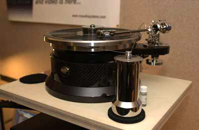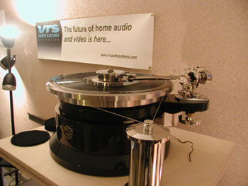HighEnd Audio fronted their Duevel setup with both analog and digital, the former compliments of Dutch Pluto turntable fame (due for review by Jules sometime in 05), the latter via Vince Sander's VRS Systems hard-drive server. The omni-dispersion principle of the German speakers made for an exceptionally airy if ultimately slightly soft-focus sound which is the particular hallmark of such designs. Duevel's new battery-powered CD player made its US debut in a silent display [below right].