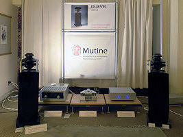 The second Mutine room featured a much less expensive omnidirectional speaker, the Duevel Planets. Operating with a Mimetism 27.2 player and 17.2 integrated amplifier, it lacked the precise focus of the Diamantes, but the sound was decidedly musical, and their $1500 price tag brought the dreams of visitors much closer.