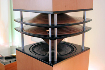 It has a 12-inch paper cone for bass, with neodymium magnet. The tweeter/midrange is pure titanium compression driver with special plating to make the driver stiffer.